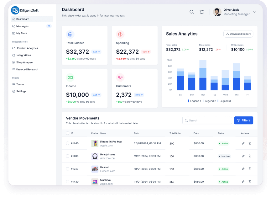 From efficient Dealer inventory & Distribution systems to comprehensive jewellery business management tools and intelligent HR management software, our solutions are designed to simplify operations, enhance productivity and drive success. Partner with diligentSoft to bring digital transformation to your business - where innovation meets reliability.